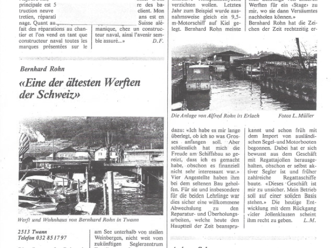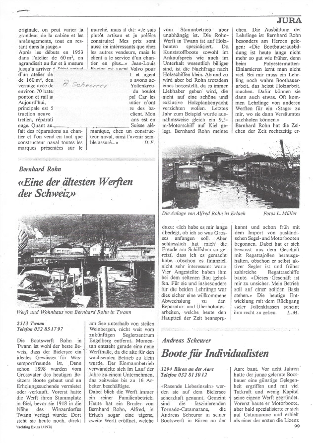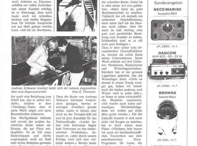 Mit großer Freude öffnen wir heute ein Fenster in die Vergangenheit: Ein Zeitungsartikel aus dem Jahr 1978 beleuchtet die Werften des Berner Jura – und zeigt dabei einen jungen, ambitionierten Andreas Scheurer, der gerade erst begann, Boote zu bauen, die später Geschichte schreiben sollten.